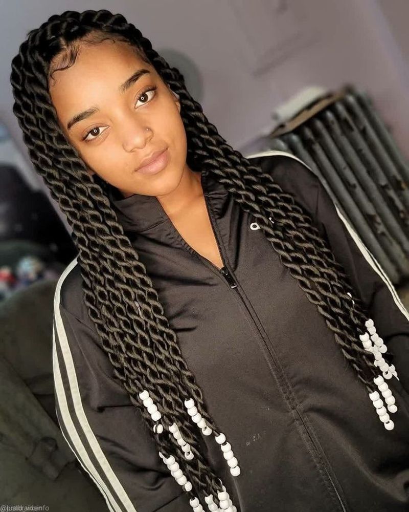 Whether you opt for neutral-toned beads or vibrant colors, twist braids with beads are perfect for adding a touch of flair to your ensemble. Explore endless possibilities and showcase your unique personality with every bead choice.