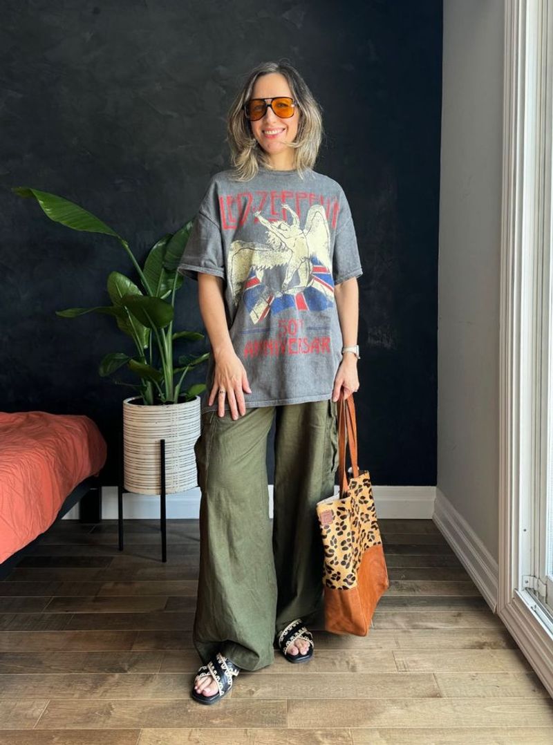 Tuck in just the front for a styled-but-not-trying-too-hard look. Vintage band tees or artistic prints add personality while keeping your summer outfit breathable.