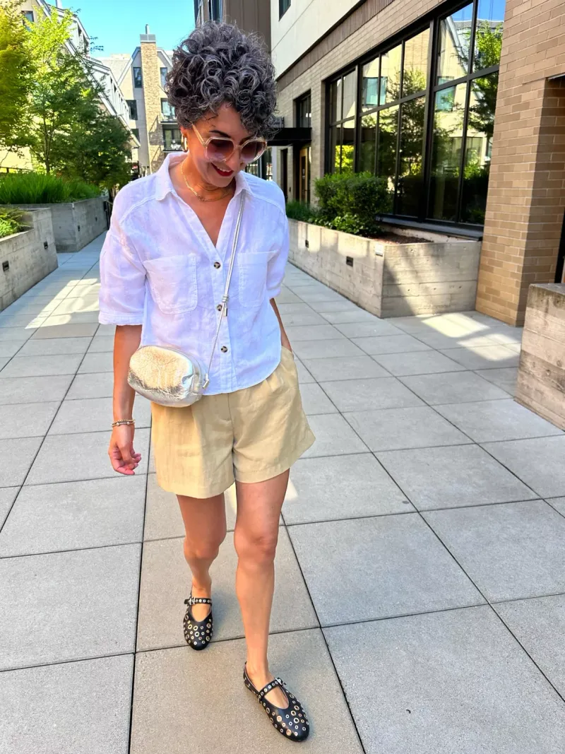 Though shorts might seem reserved for the younger crowd, longer tailored styles paired with ballet flats create an unexpectedly sophisticated look. I once skeptically tried this combo before a garden party and received endless compliments!
