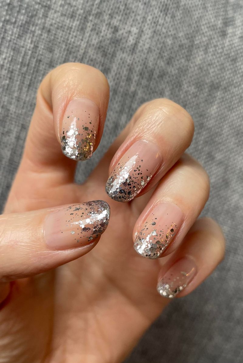 Though intricate nail art intimidates many, glitter gradients require zero precision! Apply your base color, then dab glitter polish near your cuticle, gradually applying less as you move toward the tip.