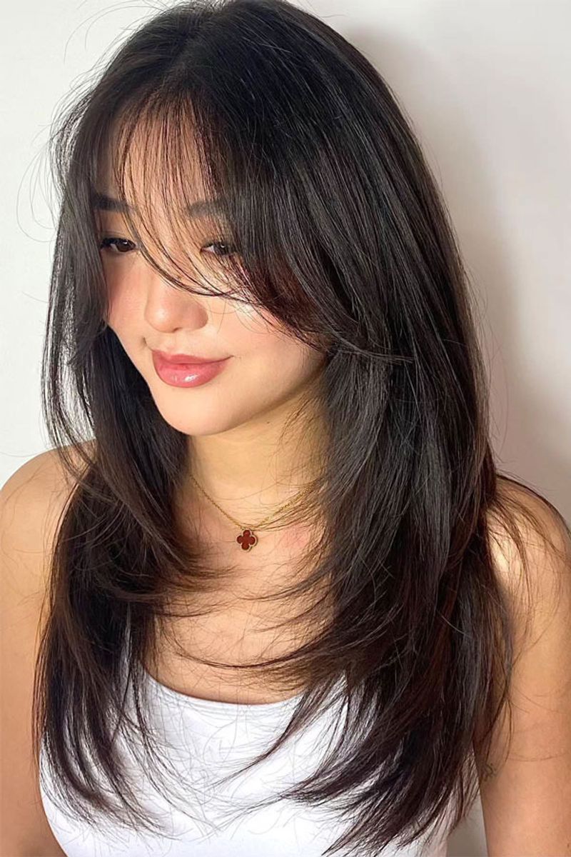 Wispy bangs are like a gentle breeze for your face. They soften features and add a touch of mystery.