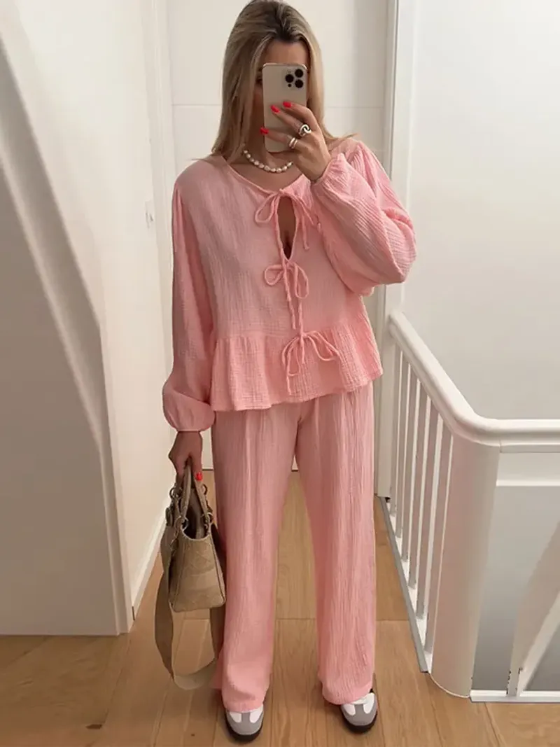 Ruffles and romance dance together in these enchanting pants. With layers that cascade softly, they add a whimsical touch to your spring wardrobe. Whether it’s a sunset stroll or a garden date, these pants bring a touch of romance to your every move.