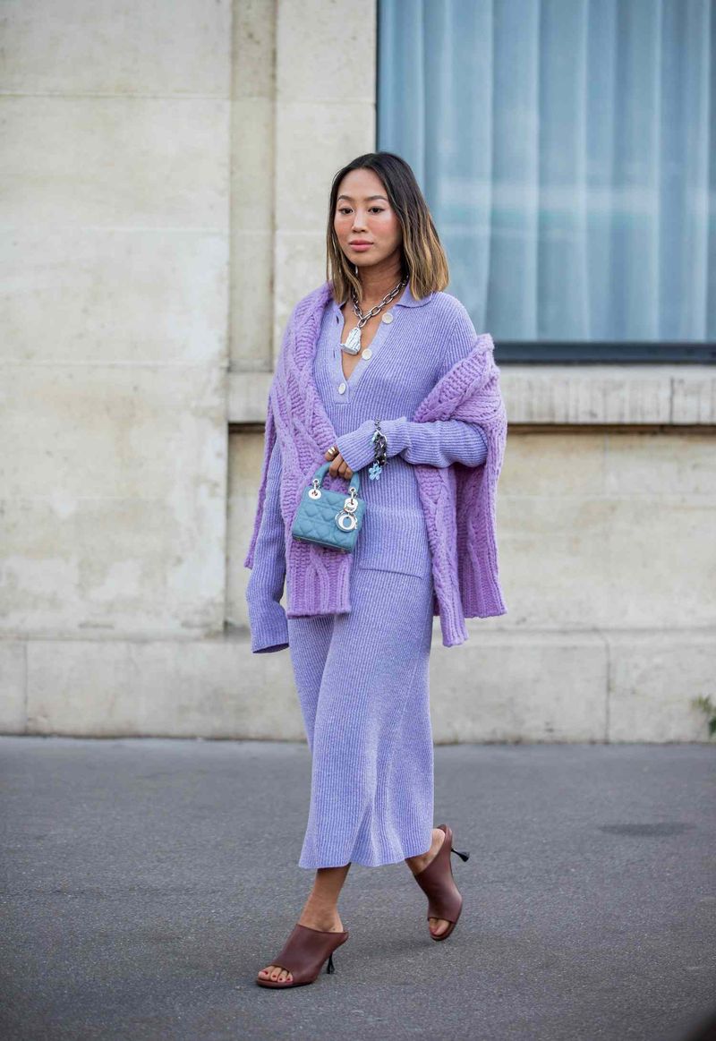 Whether you’re wearing head-to-toe navy or embracing fifty shades of beige, dressing in a single color family creates an unbroken vertical line. This continuous visual path eliminates horizontal breaks that can widen your appearance.