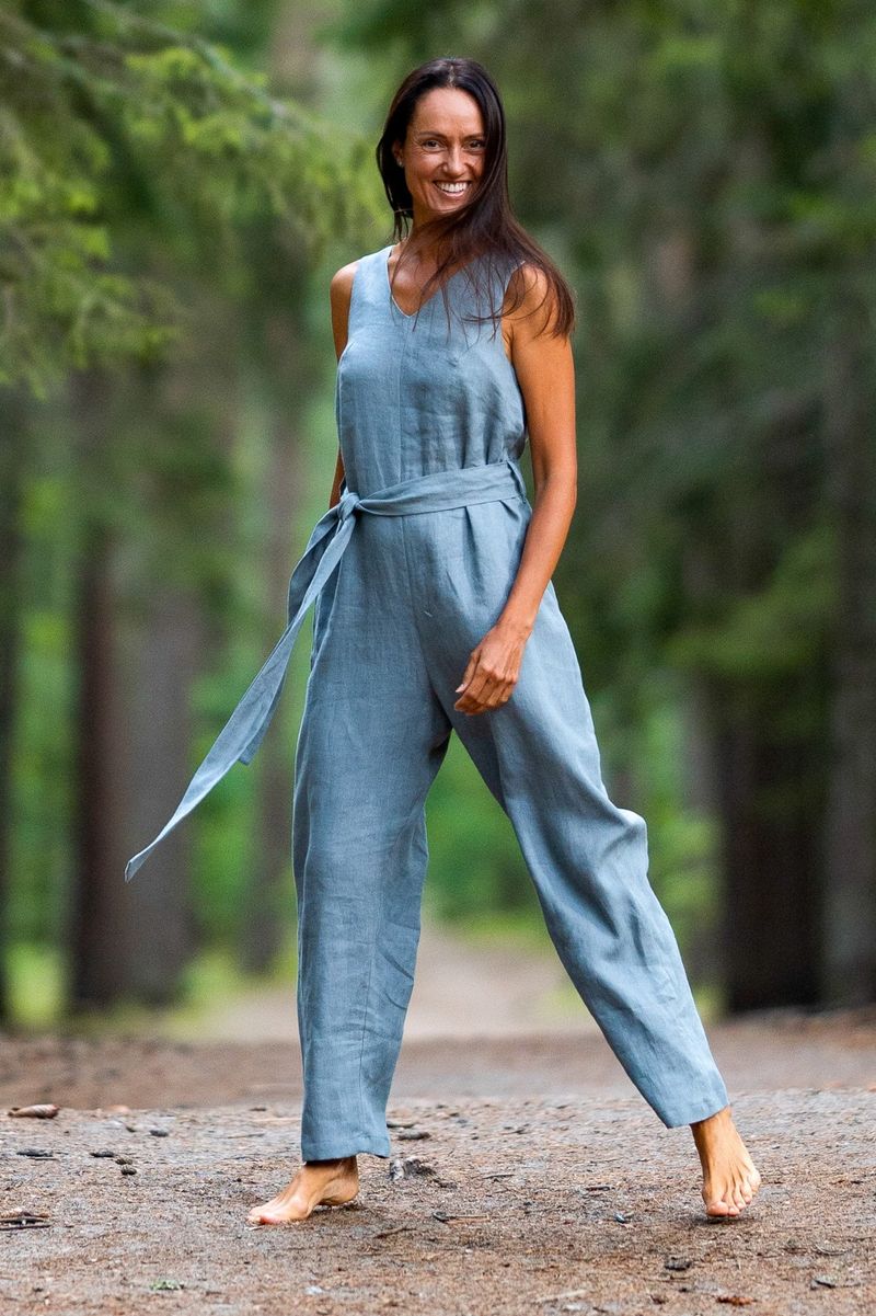 15. Linen Palazzo Jumpsuit With Statement Belt