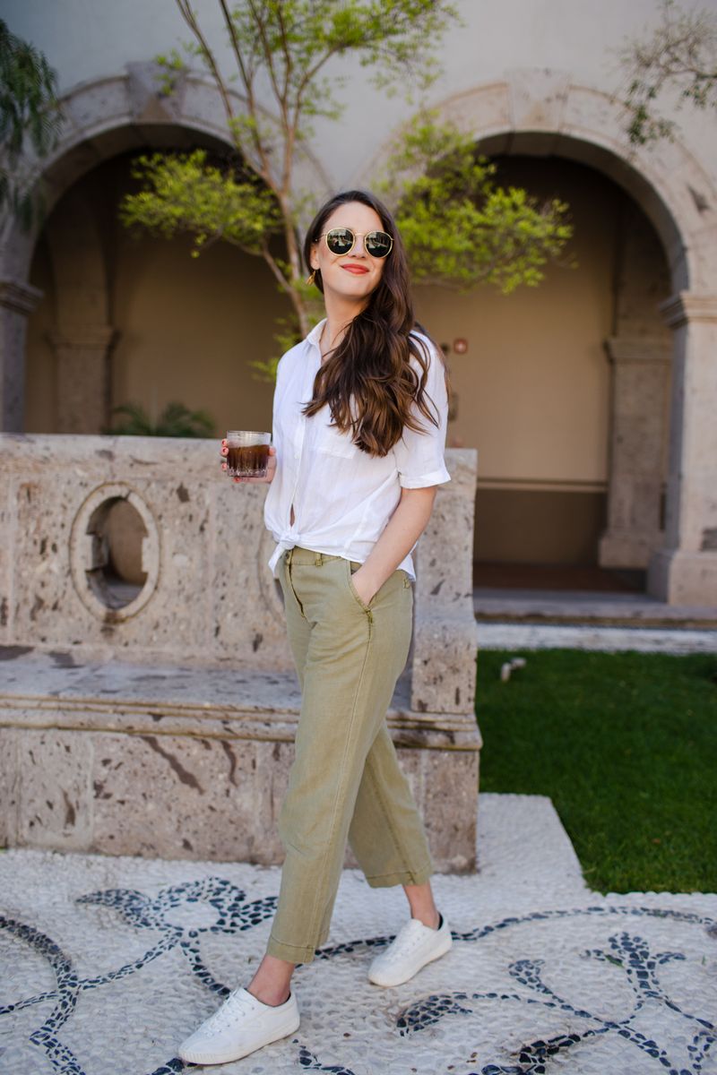Linen trousers paired with minimalistic sneakers create casual elegance. Picture yourself lounging at a garden party, floppy hat in tow. It’s relaxed yet refined, an unbeatable duo for spring. This look is for those who adore understated luxury and natural fibers.
